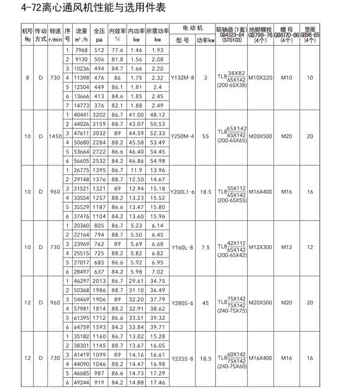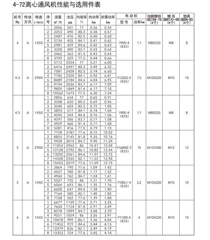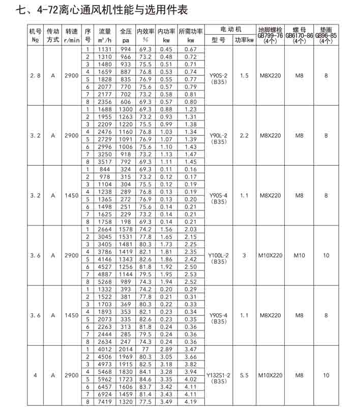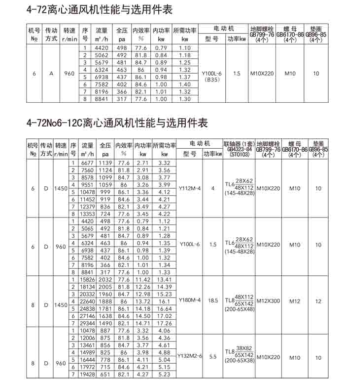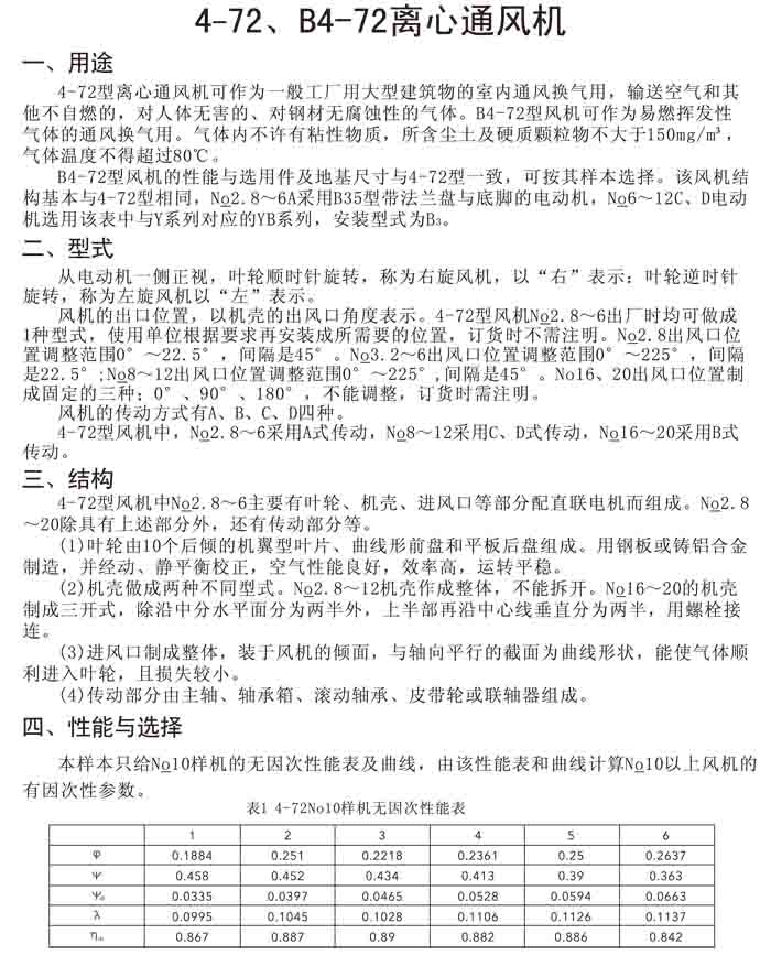 一、4-72(B4-72)、4-79(4-2*79)離心風機